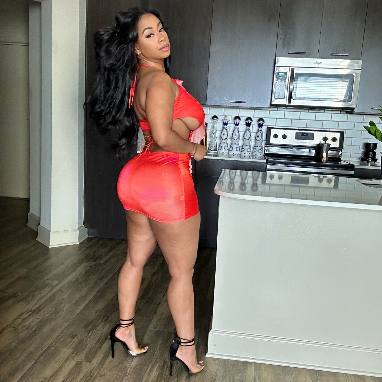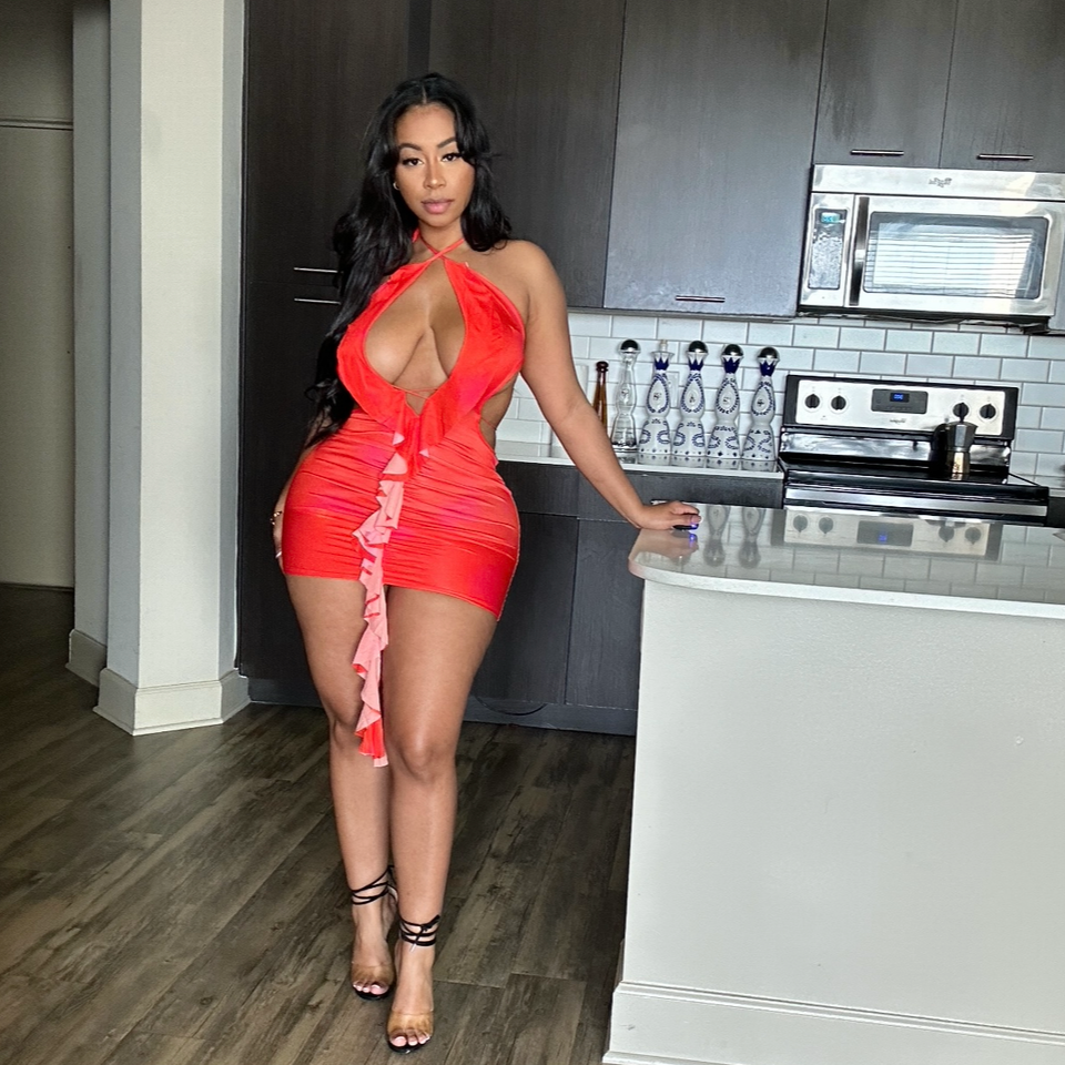 Turn heads in this stunning coral mini dress designed for those who dare to make a statement. Featuring delicate spaghetti straps and a daring plunged front, this piece showcases your confidence with effortless elegance. The open back adds an unexpected allure, while playful ruffled detailing brings dimension and movement to every step. Crafted from stretchy fabric that hugs your curves perfectly, this dress transitions seamlessly from night out to special occasions. Versatile, flattering, and undeniably chic—your new go-to for unforgettable moments.